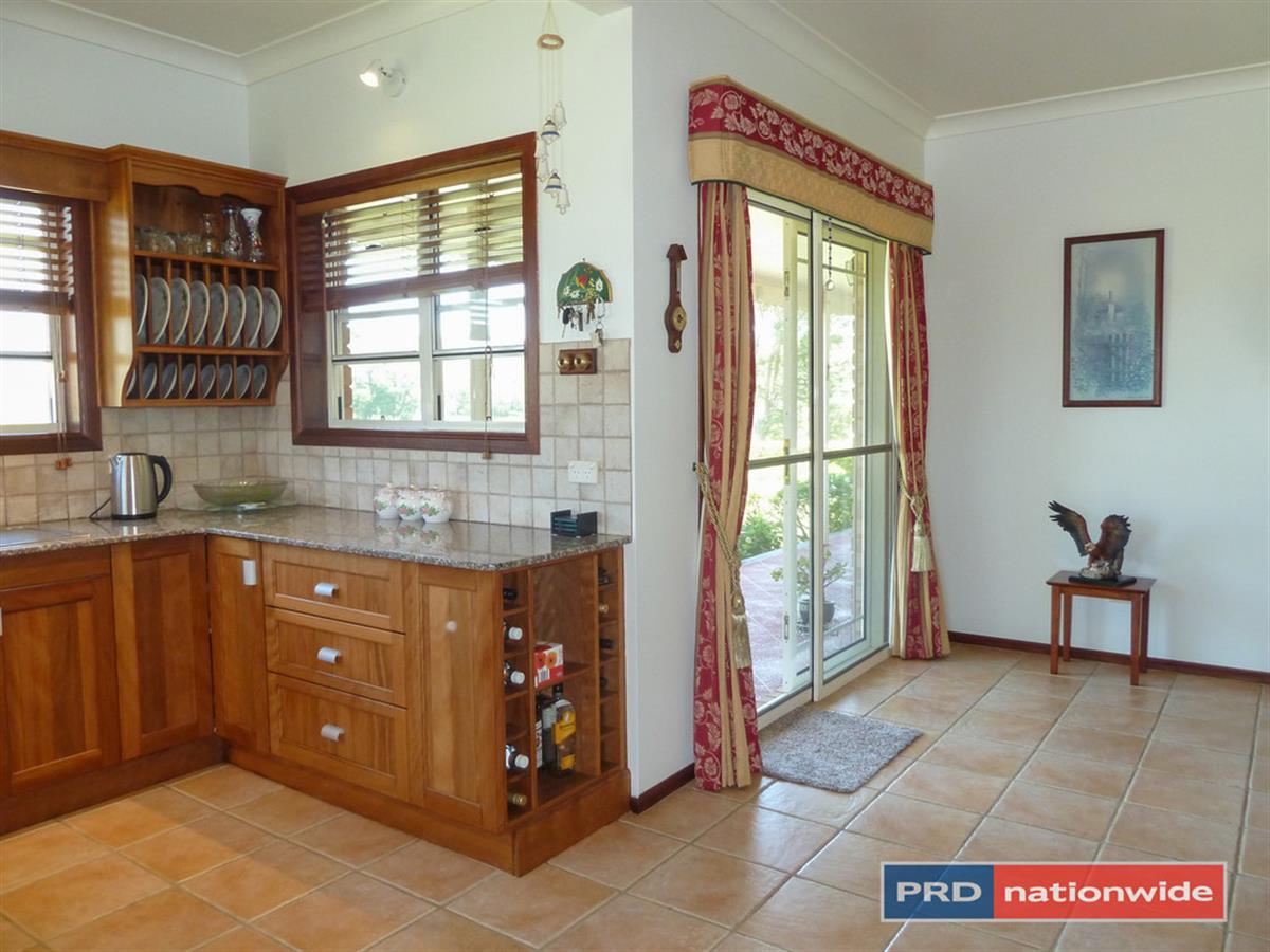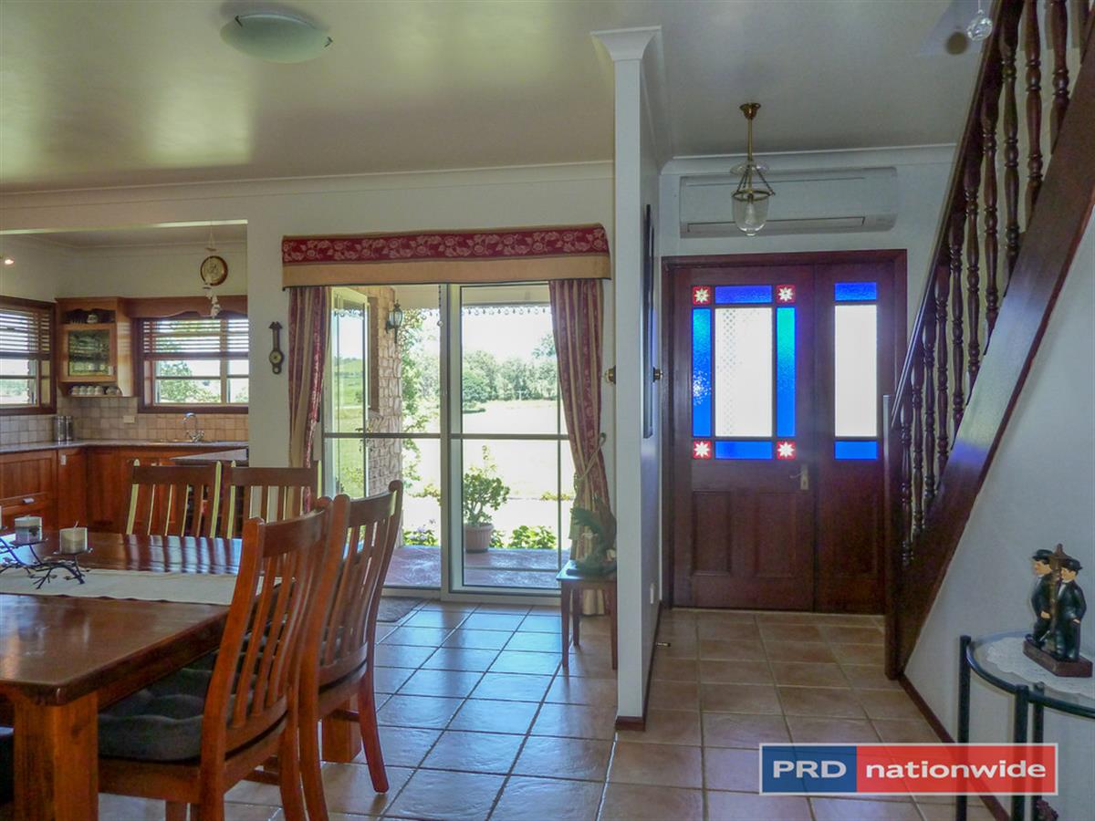 Set amongst spectacularly landscaped gardens, this unique two-storey house offers a comfortable place to call home and enjoy the best of rural living. On the ground floor, there's a spacious kitchen with granite benches and walk-in pantry, dining room, lounge room with fireplace, bathroom, and master bedroom with built-ins. Upstairs, there's an additional two bedrooms, bathroom, and sitting room with office space. There's ample space outside, with verandahs to the front and back as well as a large outdoor entertaining area with sweeping rural views. The 14 acre property also features a double carport, large colorbond shed with solar panels feeding back to the house and grid, cattle yards with head bail, dam and new bore pump.
